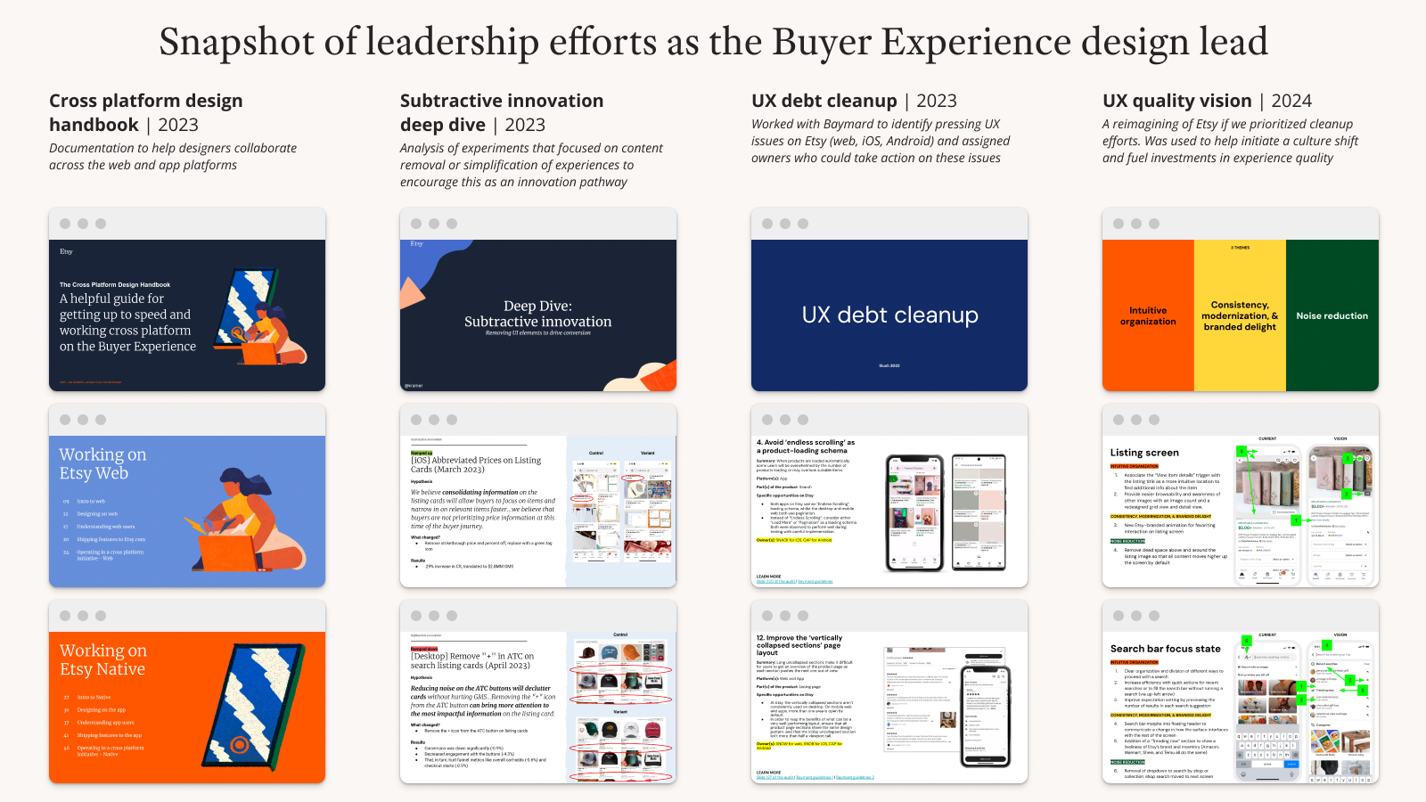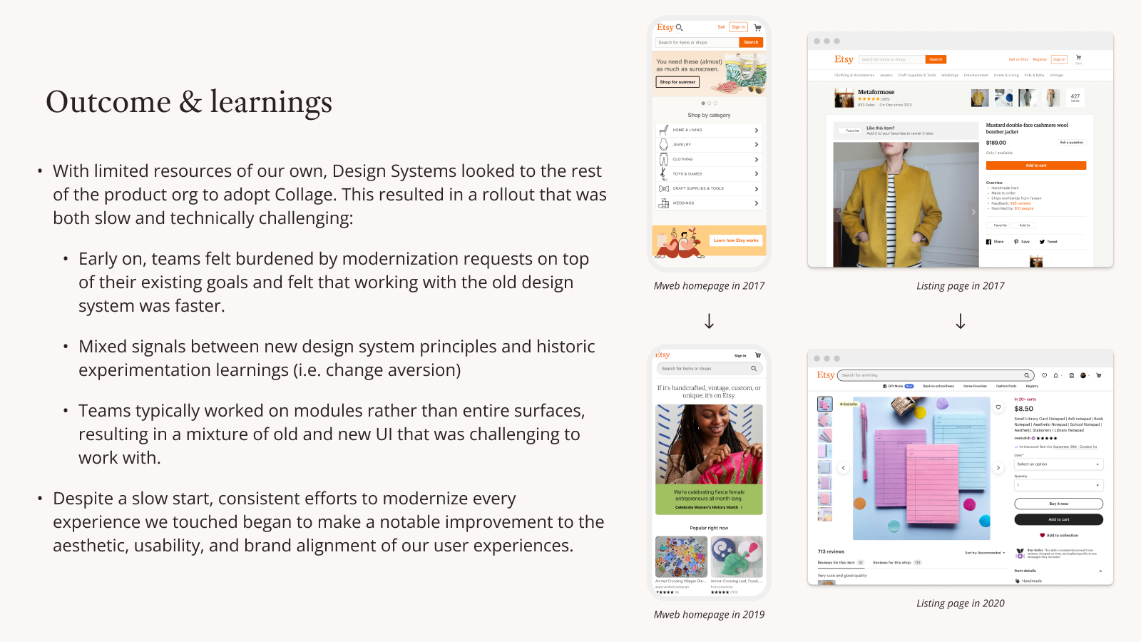 Furthermore, Etsy's product strategy for many years was laser-focused on revenue-driving projects that could prove their value in a short time horizon. As a result, we consistently deprioritized experience cleanup efforts.