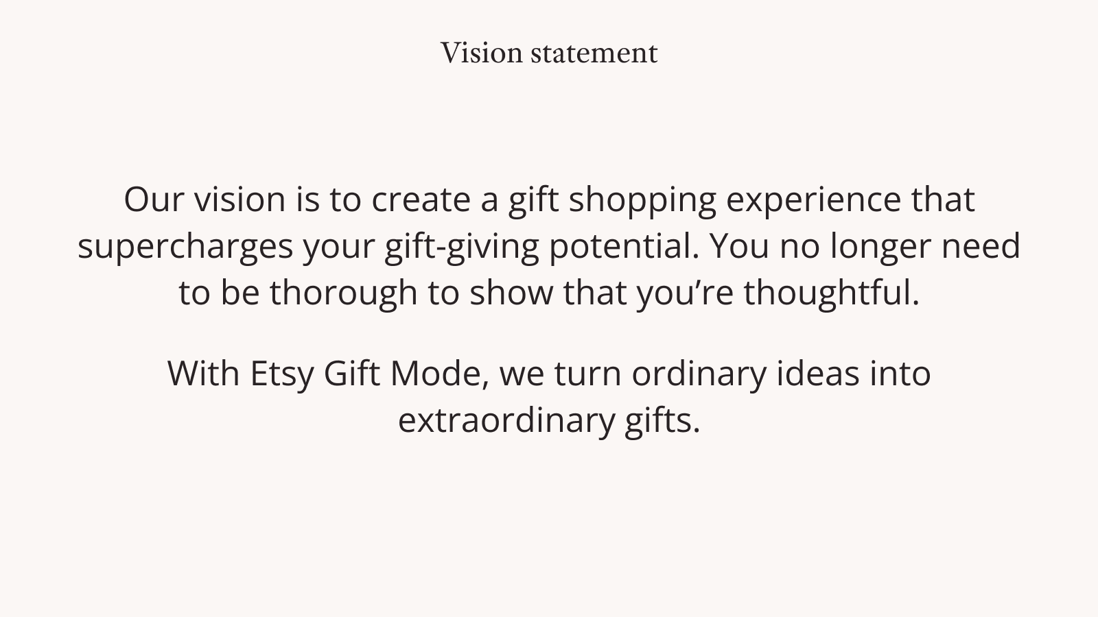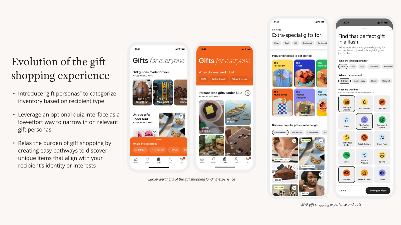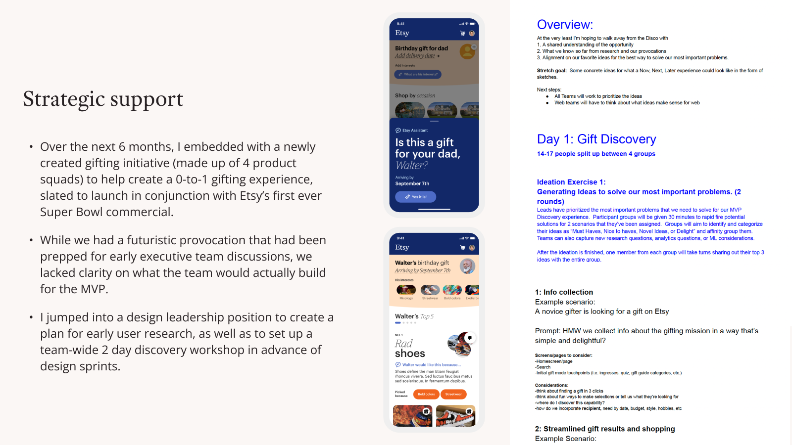 Nearing completion of the MVP, leadership developed an interest in Etsy as the champion of gifting. As a result, I then pivoted to a 6 month rotation with the newly created gifting initiative to help launch Gift Mode.